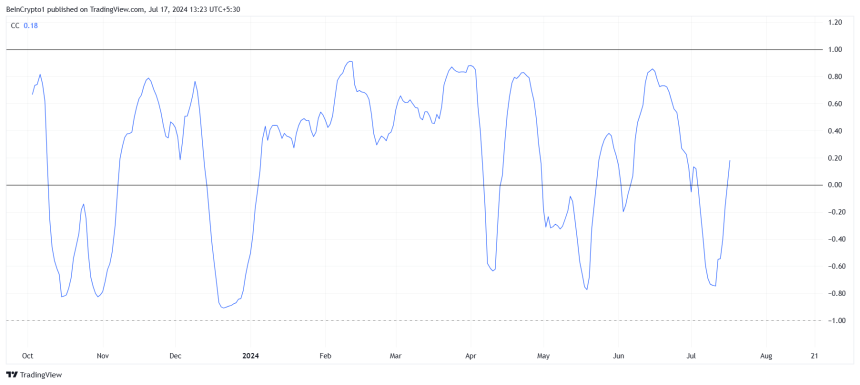 Moreover, BANANAs correlation with Bitcoin has recently turned positive. This shift is significant as it implies that BANANA and Bitcoin are now moving in tandem.