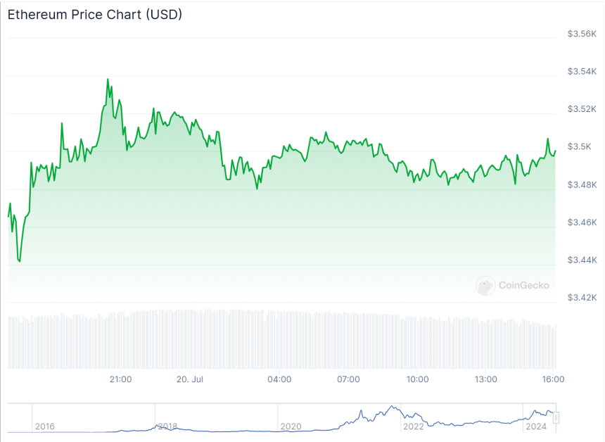 Ethereum 24-hour price chart | Source: CoinGecko
