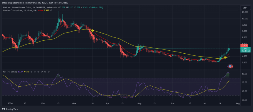 Given these mixed signals, while the bullish trend and positive market sentiment could push Helium's price towards $10, the overbought condition and historical volatility suggest that this target might be ambitious for the immediate future.
