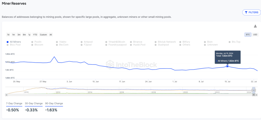 Bitcoin miners held a total of 1.92 million BTC at as of July 15. But as the Ethereum ETF hyped kicked in after the announcement of the July 23 launch date Bitcoin miners capitalized on the renewed investor interest to stage a large sell-off.