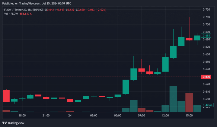 Currently, Flow (FLOW) is trading at $0.6283, according to data from crypto.news. The token‘s trading volume has increased by 361%, reaching approximately $150 million. Additionally, FLOW’s market capitalization has surged to $950 million. Despite this rise, FLOW remains 98.6% below its all-time high of $46.16, recorded on April 5.