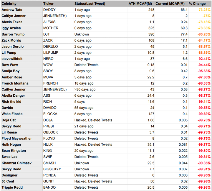 Its been just a few weeks since celebrity memecoin mania was at a crescendo, but the tokens appear to have already plummeted from early price runs.
