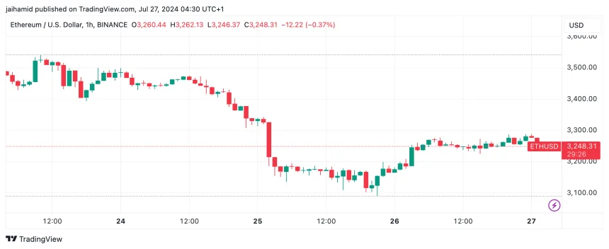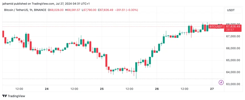 At the time of writing, Bitcoin was priced at $67,829, while Ether was at $3,248.