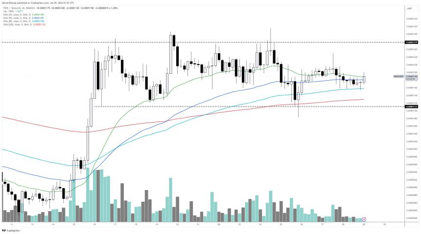 Based on the traders chart, he seems to suggest that PEPE will break out after soaring above resistance at $0.0000128. At time of writing, PEPE is worth $0.0000177.