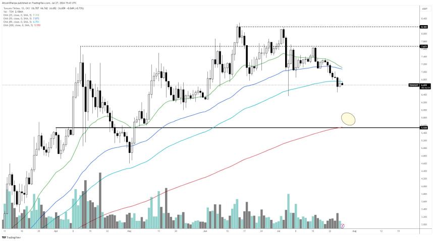 One of the strongest coins on the market the last few months looks a bit iffy in the mid-term. Wondering if that $5 level (200-day EMA) is going to get tested in the coming weeks.