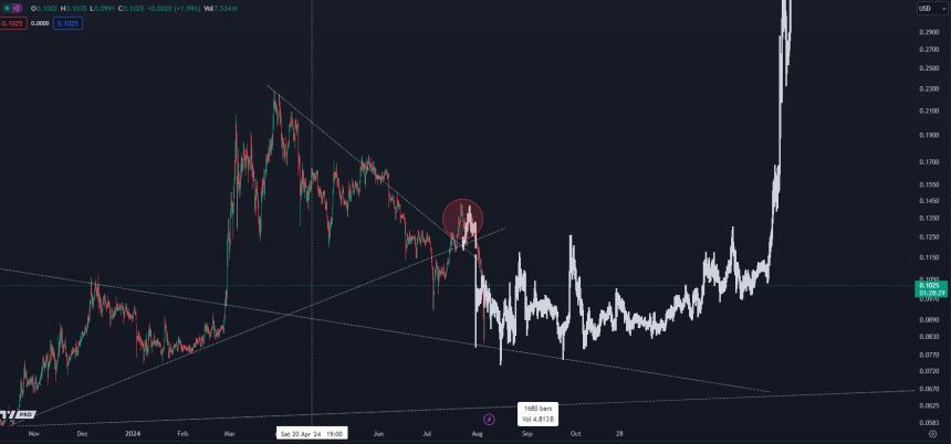 DOGE is valued at $0.104 at time of writing, a 5% gain during the last day.