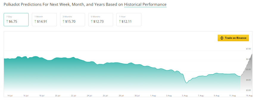 Should such an event ensue, this would be a massive comeback for the token. But thats not all. In the coming six months, Polkadot is projected to climb 180%, and in a one-year time span, it is expected to rise 166%.