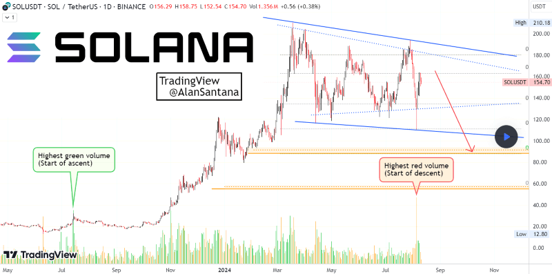 That said, crypto trading expert Alan Santana has recently observed that Solana was exhibiting a strong bearish signal in August 2024, suggesting a steeper decline in its price, especially considering the volume and price chart patterns mimicking those in July 2023.