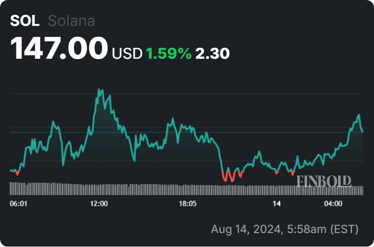 For the time being, Solana is trading at the price of $147, which reflects an increase of 1.59% in the last 24 hours, reducing the 2.67% drop across the week and the accumulated decline of 2.40% over the past month, according to the most recent chart information.