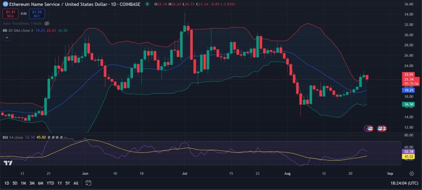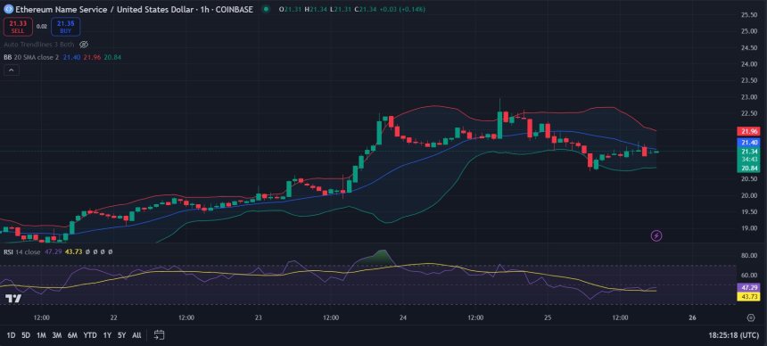 Ethereum Name Service price analysis 1-day price chart: ENS decreases volatility at $21.34
