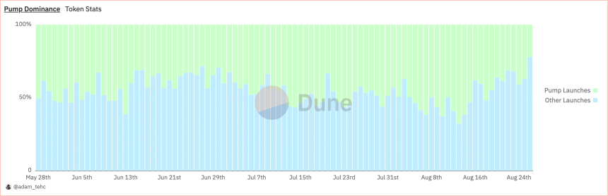 Pump.fun is the leader in Solanas memecoin ecosystem and holds 50% of the market share. It achieved this by streamlining token launches and making them both quick and easy. It also focused on ensuring a fair process for creating and trading tokens, avoiding problems like presales or team allocations.