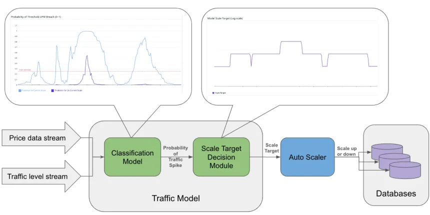 “Starting to scale when traffic is already high is often too late,” the blog explains. “We developed an automatic scaling solution that uses machine learning to predict the traffic spikes and trigger a scale up before the traffic arrives.”