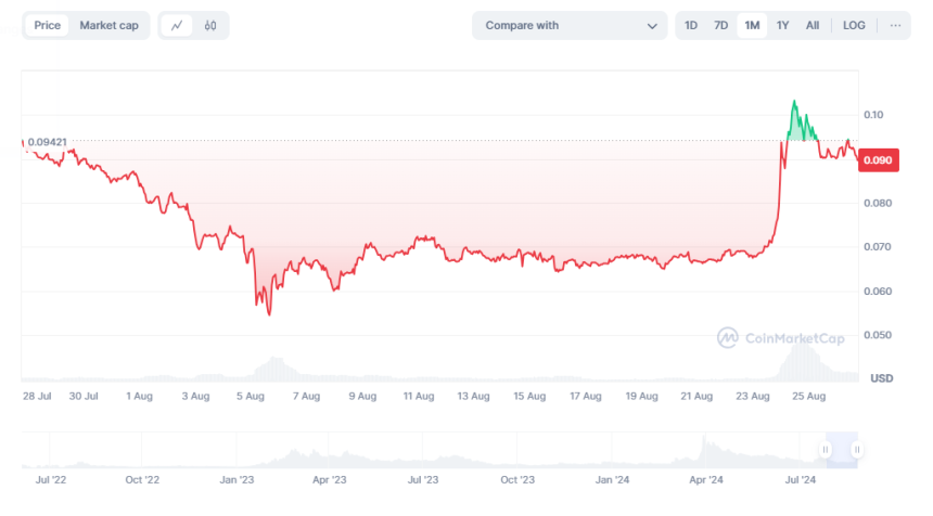 At the time of writing, VELO was trading at $0.089, reflecting weekly gains of over 37%.