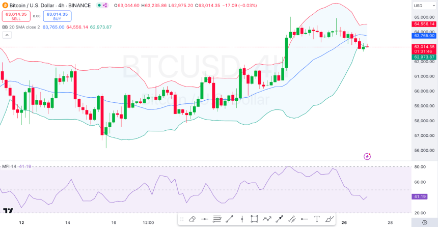 On the other hand, we see that the MFI is around 41, indicating neither an overbought nor oversold condition. However, it is moving downward, hinting at increasing selling pressure. If it falls below 20, it would confirm an oversold condition, potentially signaling a reversal. Bitcoin traded at $62,956 as of press time, representing a 1.69% decrease over the last 24 hours.