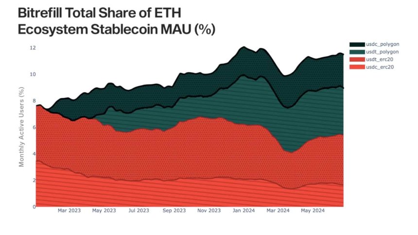 Interestingly, stablecoins on Ethereums layer two solutions, particularly Polygon (MATIC), have outpaced their mainchain counterparts. This shift underscores the growing importance of scalability and lower transaction costs in the crypto payment space.