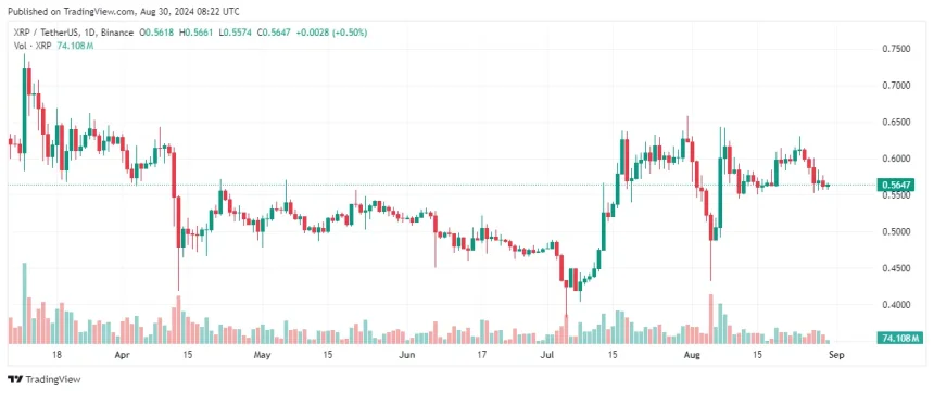 Nonetheless, these gains have not been sustainable. At press time, XRP has plummeted 11.98% from the monthly high of $0.6416 registered on August 7, the same day Judge Torres released the final judgment. Currently, XRP is trading at $0.5647, marking a daily decrease of 1.61% and a weekly decline of 6.02%.
