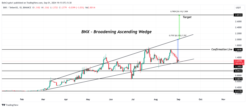 For the bullish pattern to be confirmed, BNX needs to flip the $1.66 confirmation line into support. If this happens, it would validate the breakout potential, possibly pushing the price toward the $2.00 mark. Based on the broadening wedge pattern, such a breakout could lead to a 39% increase, setting a target price of $2.81.