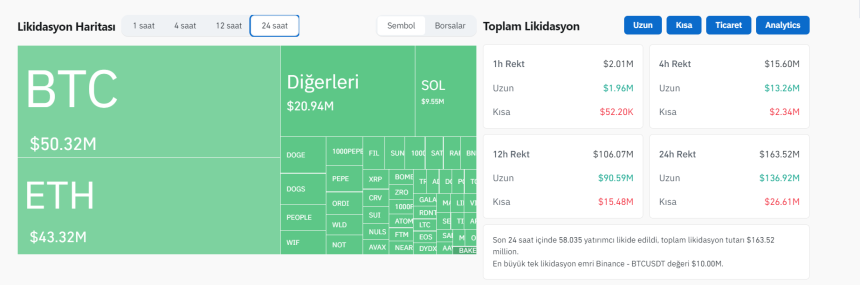 These declines caused a large number of long positions to be liquidated. According to Coinglass data, $163 million worth of leveraged trades were liquidated in the last 24 hours. $136 million of these were long positions and $26 million were short positions.