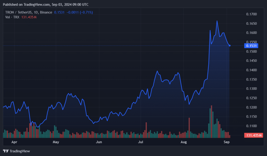 TRON networks revenue saw an impressive rise in August while Ethereum recorded a notable decrease.