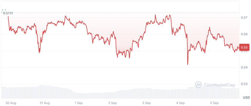 XRP is currently trading at $0.551, which is the closest it has come to the August low of $0.43 set exactly one month ago.
