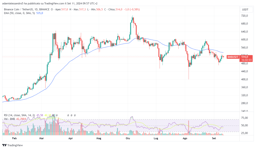 As September 29 approaches, BNB could approach the target of 600 dollars, from which a further leg up to the upside could start.