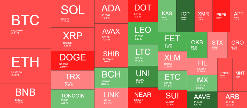 Most altcoins produced some gains over the past few days but have mimicked BTCs performance since yesterday by turning red. Ethereum touched $2,400 yesterday but has retraced to $2,330 as of now. BNB briefly exceeded $520, but it is down to $512 now.