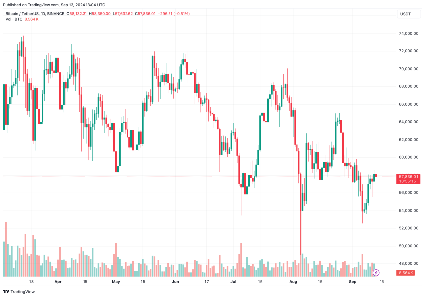 At press time, Bitcoin trades at $57,836, up a minimal 0.2% in the past 24 hours. BTCs total market cap stands at $1.14 trillion.