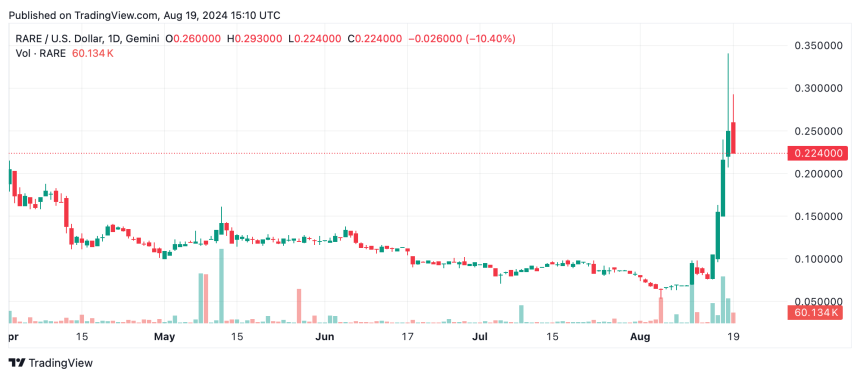 Superrare (RARE) against the U.S. dollar via Gemini on Aug. 19.