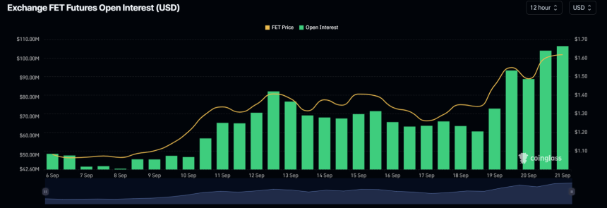 At press time, FET is trading near $1.61 and has experienced a price surge of over 7% in the last 24 hours. During the same period, its trading volume declined by 20% indicating lower participation from traders.