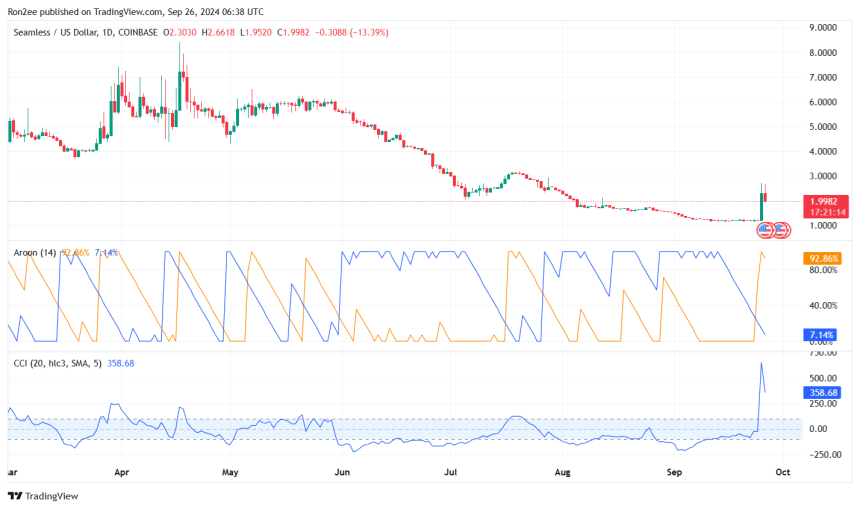 At press time, SEAM (SEAM) was trading at $1.99, its highest level since Aug. 5 when the crypto and stock markets crashed, and the global crypto market saw over $1 billion in liquidations. The cryptocurrency reached an intraday high of $2.55, up over 104% from its weekly low of $1.25.