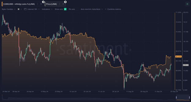 Chainlinks recent price movement can be traced back to whale accumulation. On-chain data reveals that large investors holding over 1 million LINK have significantly increased their holdings over the past six weeks.
