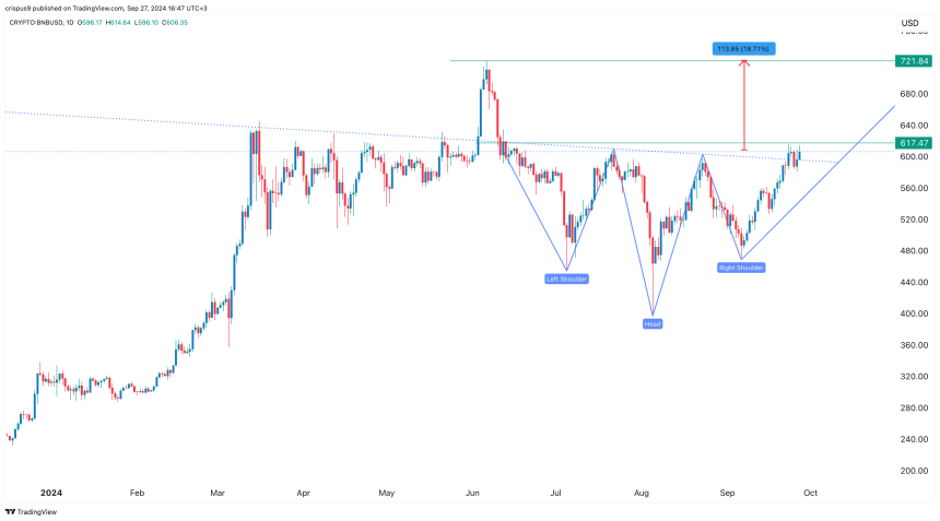 The Binance Coin (BNB) price surged to a high of $616 on Friday, Sept. 27, its highest point since June 27.