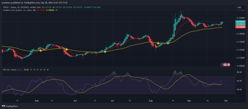 TRON is currently priced at $0.155078, with a 24-hour trading volume of $708.51 million and a market capitalization of $13.44 billion, making up 0.58% of the crypto market. Over the past day, TRXs value has increased by 0.51%.