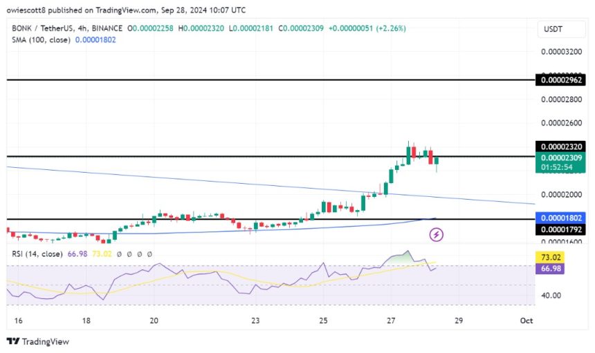 BONK is currently facing turbulent waters as a sharp decline casts a shadow over its recent price performance. After a period of impressive gains, the recent downturn is raising concerns about an impending correction, with mounting selling pressure suggesting that the bullish momentum may be waning. As the market sentiment shifts, the crypto community is left wondering how low BONK could go and whether it can regain its footing.