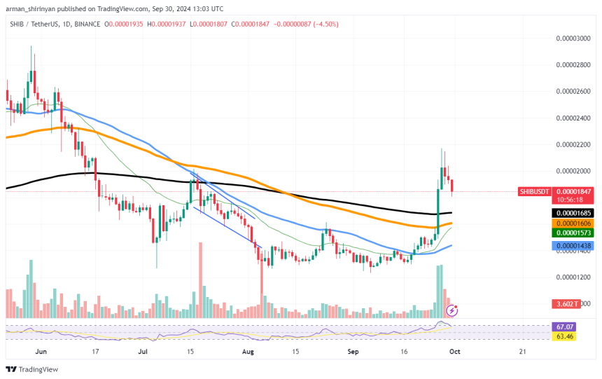 The stock is currently trading at $0.000018. Should the selling pressure persist, SHIB may decline even more, testing important support levels that could provide brief respite prior to any prospective recovery. The level of $0.00001685, a former resistance level that might now serve as a floor, is the first important support level to keep an eye on.