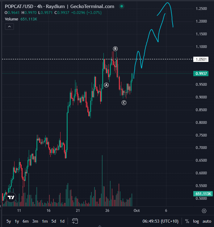 Le POPCAT looking good again here, nice ABC down on 4-hour chart just underneath all-time highs, the next leg should break.