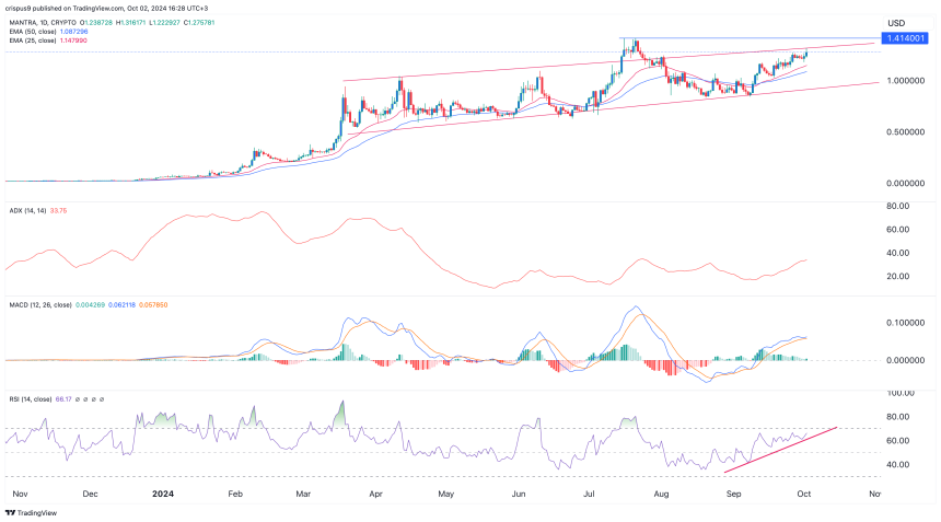 Mantra, one of the best-performing altcoins in 2024, continued its strong rally, soaring to a two-month high.
