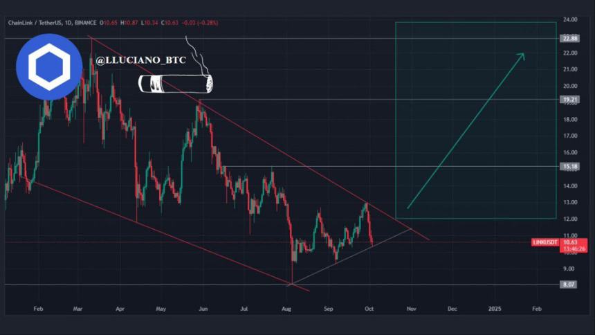 Chainlink is currently trading in a bullish pattern that has been developing for at least seven months, capturing the attention of analysts and investors alike. Many are eagerly anticipating Chainlink to surge during this cycle and finally reclaim new all-time highs. The extended consolidation phase has kept traders on edge, as they await a significant breakout.