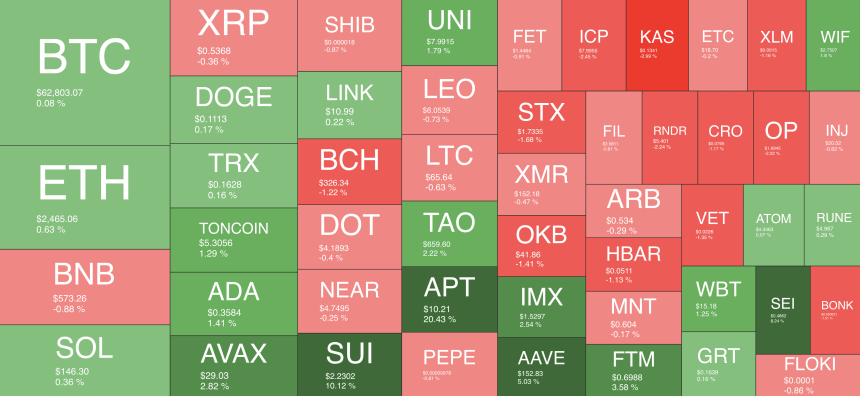 As we reported yesterday, the market achieved a considerable recovery, with Bitcoins price increasing to more than $63,000 despite its previous dip below $59,000. It appears that the rally has somewhat run out of steam.