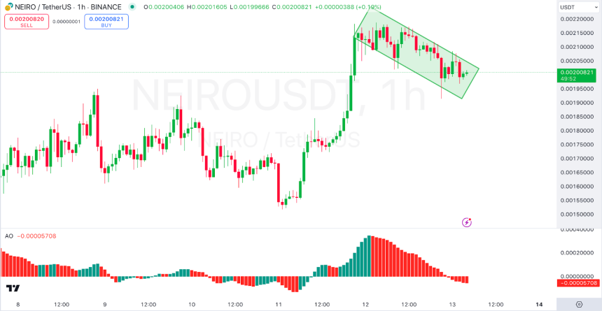 The technical analysis of NEIROs price movement provides additional insights into its future trajectory. The recent price charts from Binance show the crypto trading within a bullish flag pattern on the hourly time frame.