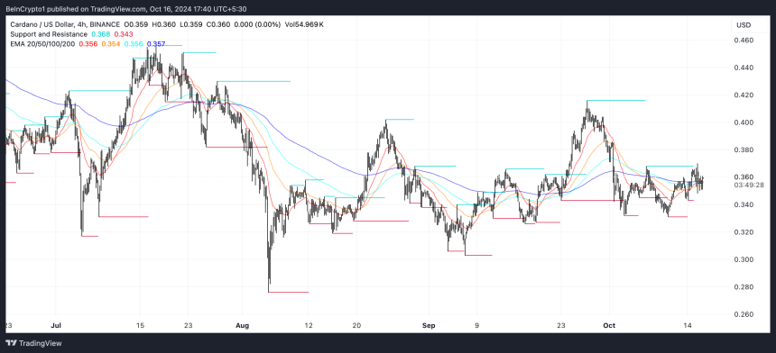 ADA EMA Lines and Support and Resistance. Source: TradingView