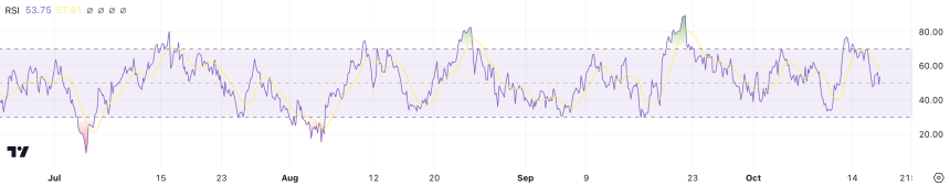 Aptos (APT) RSI is currently at 53.75, dropping from 76 just four days ago. This decline suggests a reduction in buying pressure compared to recent peaks, signaling a potential cooling period in market activity. However, the current RSI level still shows a neutral to mildly bullish outlook.