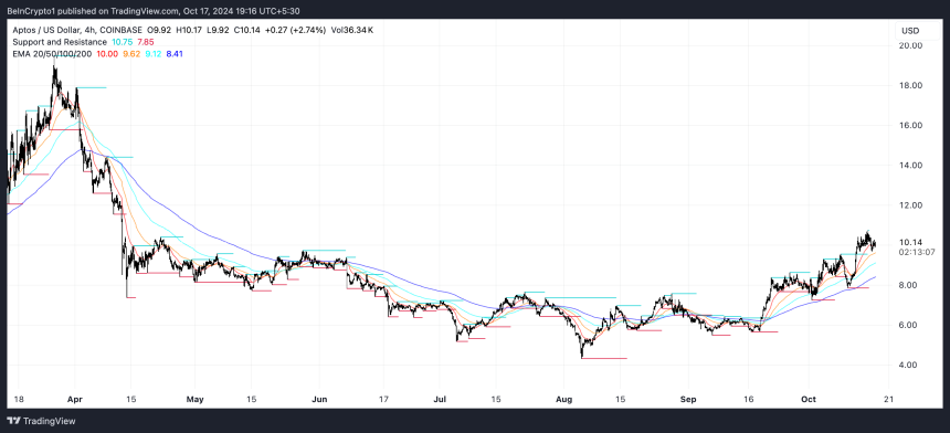 Aptos EMA Lines and Support and Resistance Cloud. Source: TradingView