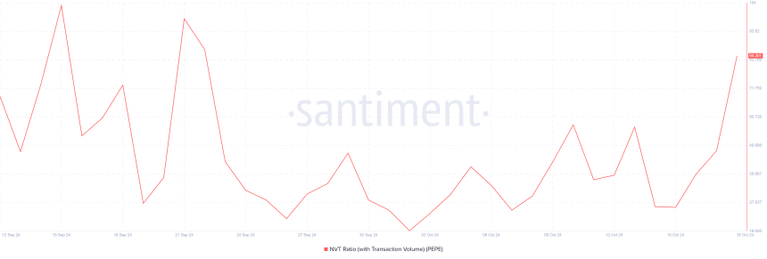 One of the most concerning indicators for PEPE is the spiking NVT (Network Value to Transactions) ratio, which has reached a four-week high. A high NVT ratio typically suggests that the network is overvalued relative to the number of transactions taking place.