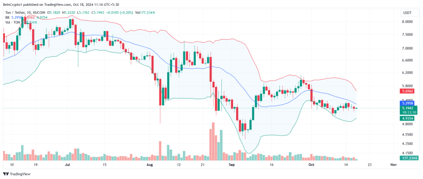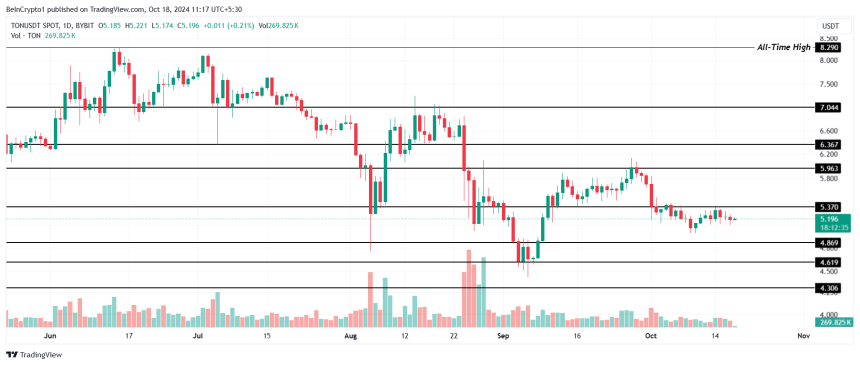 WikiBit 2024-10-18 17:05Toncoin (TON) price has struggled to breach the critical $5.37 barrier throughout the month. Despite