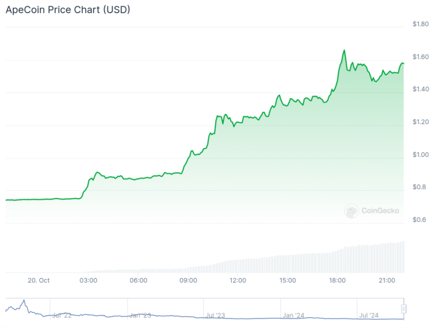 The APE coin has been on a downward trend in the second half of 2024. The coin had touched an all time low of $0.482 in August 2024. However, the coin has surged by over 215% since that low.