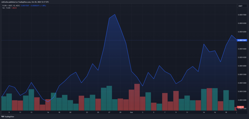 Although it was launched in 2021, FLOKI rose to prominence earlier this year after it went on a 1,100% increase over five months to peak at a new all-time high of $0.0003449. As it stands, the meme coin has corrected by around 55% from this all-time high.