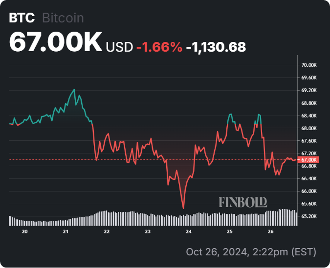 At press time, Bitcoin was trading at $67,003, down 1.4% in the last 24 hours and 1.6% on a weekly timeframe.