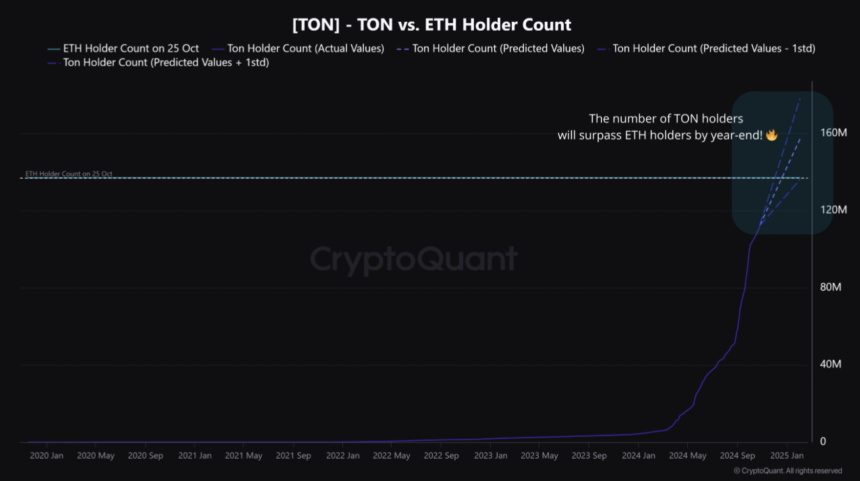 In a recent report, CryptoQuant analyst Maartun noted that Toncoin “is growing quickly,” and its holder count “is expected to surpass the number of ETH holders around December 20th.”