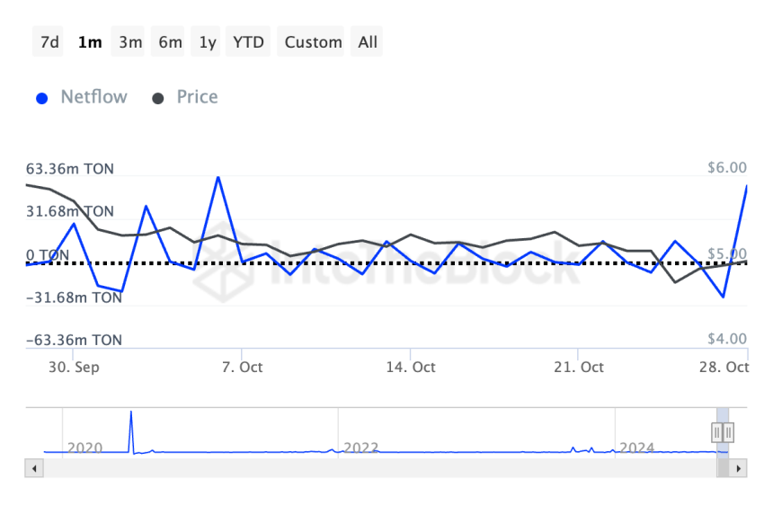Toncoin Large Holders Netflow. Source: IntoTheBlock